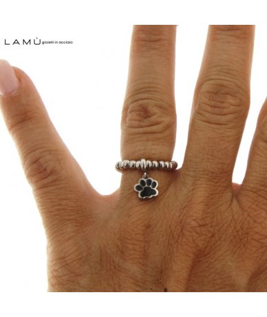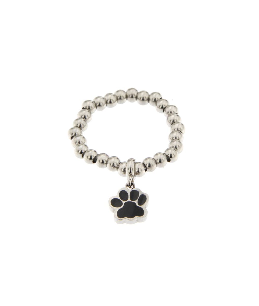 Anello elastico in acciaio inox con charm orma zampa smaltata nera