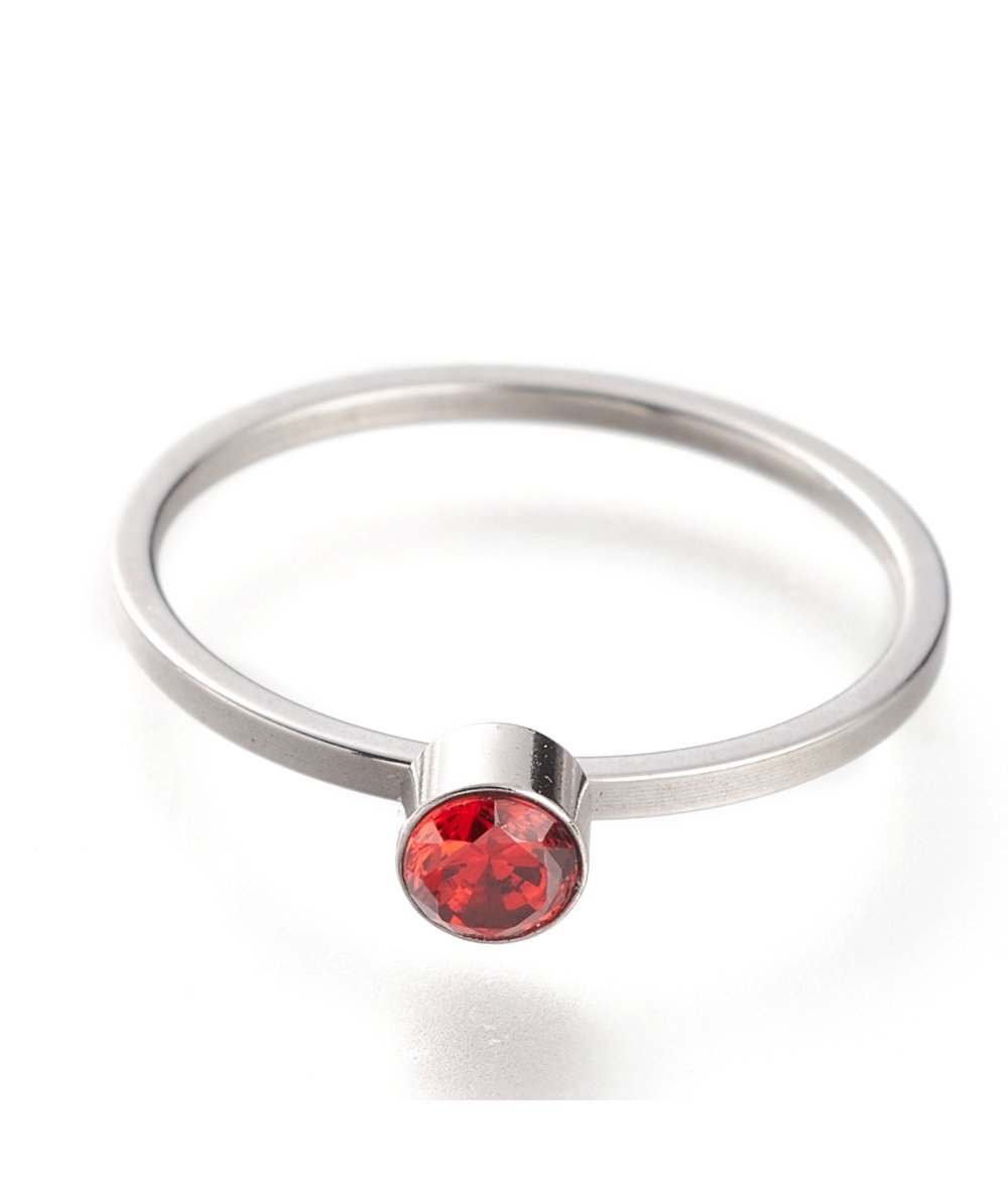 Anello con punto luce rosso in acciaio inox - Lamù gioielli