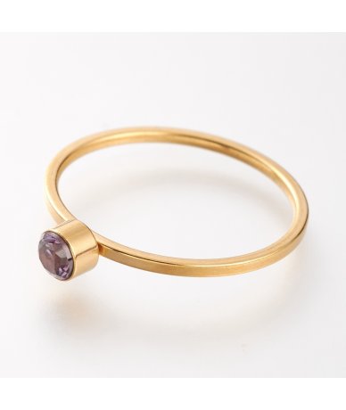 Anello con punto luce lilla in acciaio inox finitura oro - Lamù gioielli