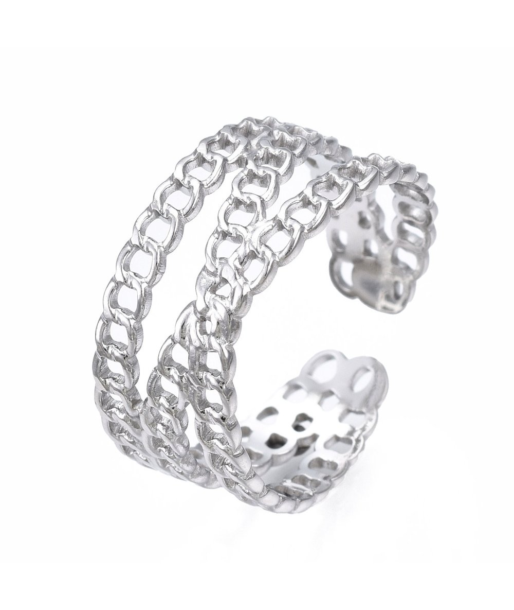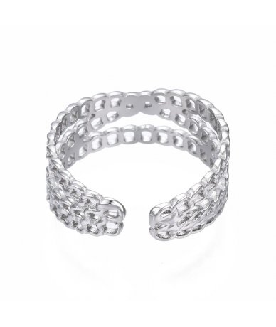 Anello fascia catene ad intreccio in acciaio inox - Lamù gioielli