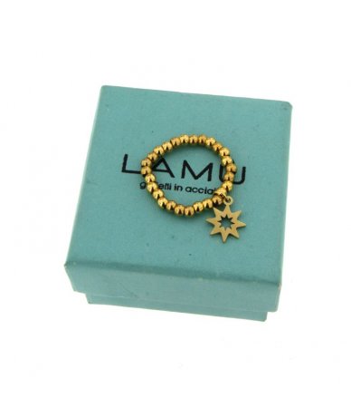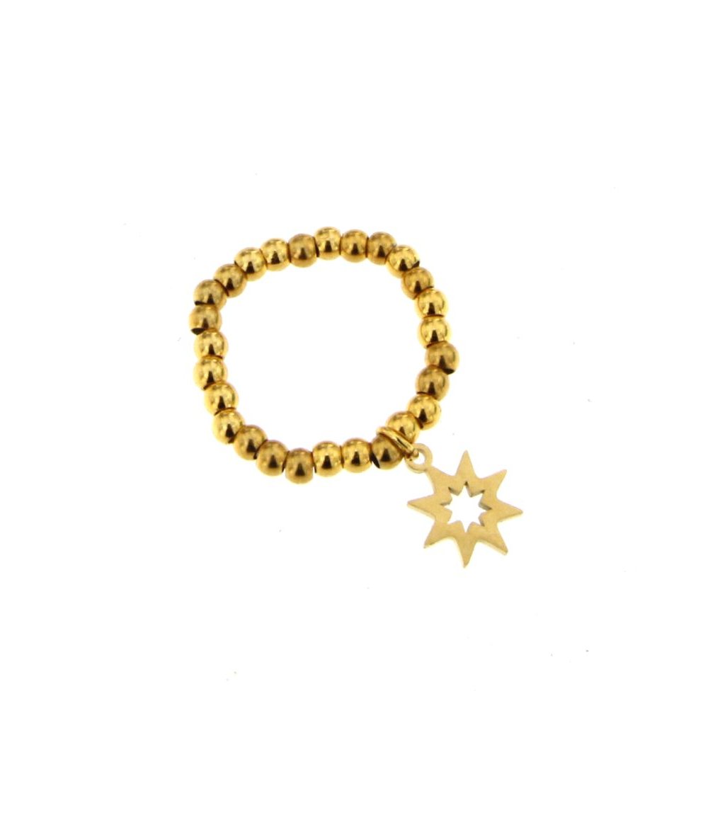 Anello elastico piccole sfere con pendente stella acciaio inox placcato oro 24K
