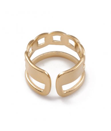 Anello fascia larga con elemento catena in acciaio inox oro - Lamù gioielli
