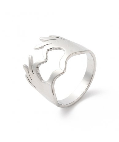 Anello fascia cuore con mani in acciaio inox - Lamù gioielli