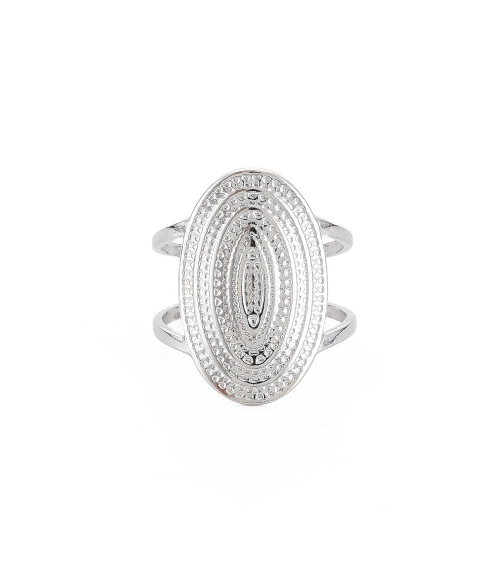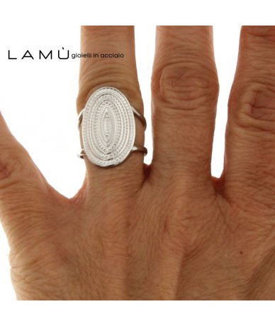 Anello regolabile con scudo ovale in acciaio inox  - Lamù gioielli