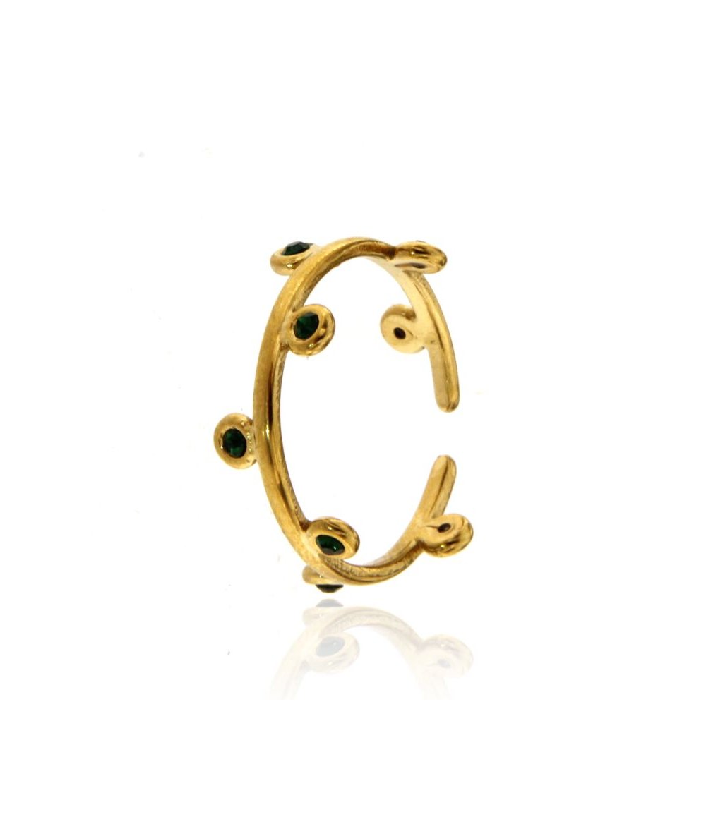 Anello in acciaio inox placcato oro 18k con punti luce verde
