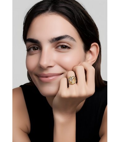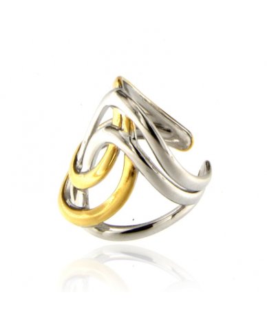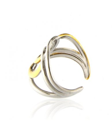 Anello con ovali intrecciati in acciaio inox bicolore