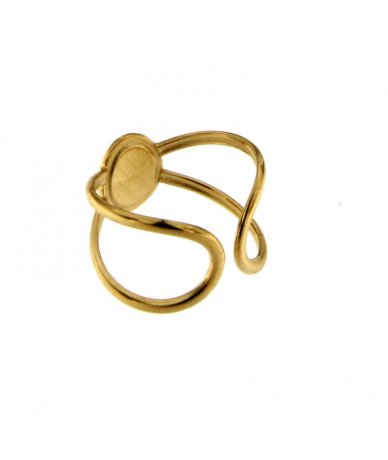 Anello con centrale ovale nero in acciaio inox placcato oro 18k