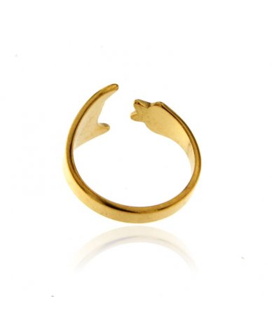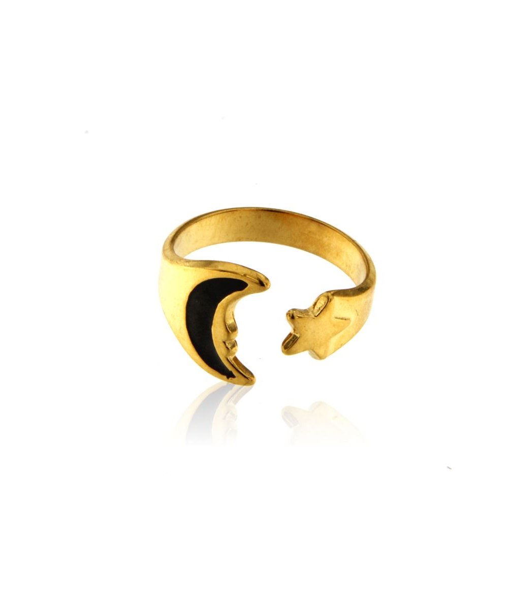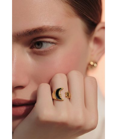 Anello con stella e luna nera in acciaio inox placcato oro 18k