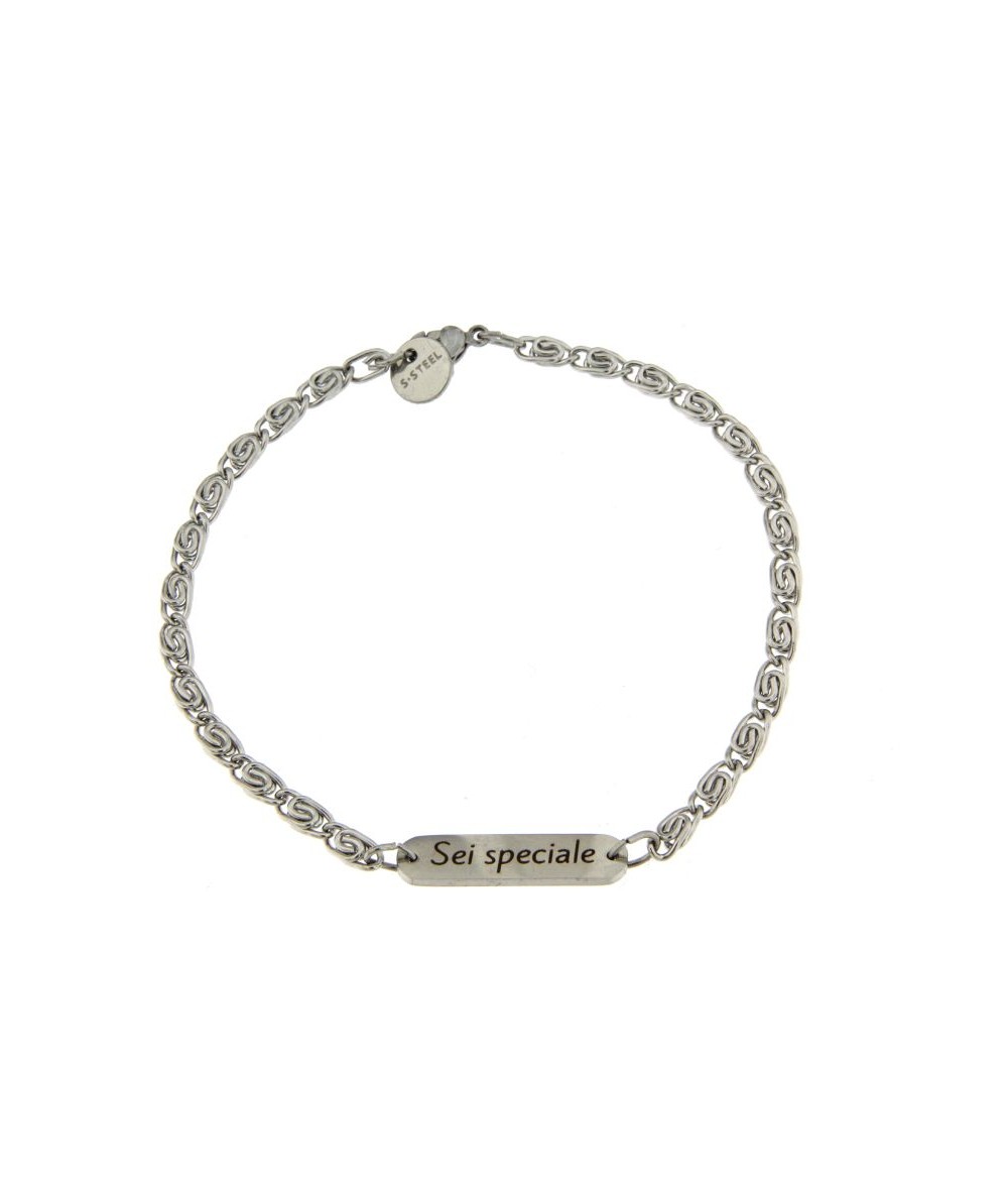Bracciale acciaio inox da uomo con targhetta incisa "Sei speciale"