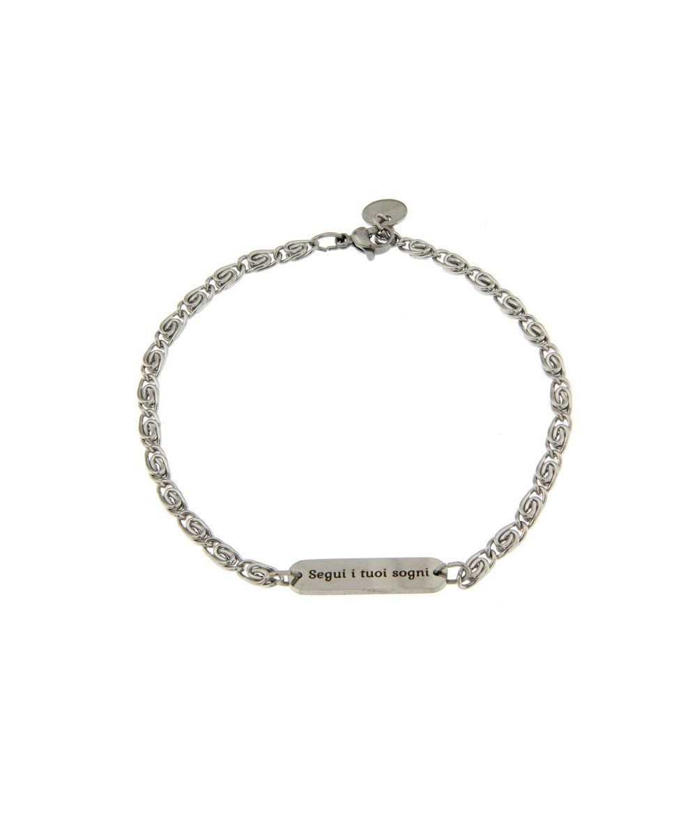 Bracciale acciaio inox uomo con targhetta incisa "Segui i tuoi sogni"