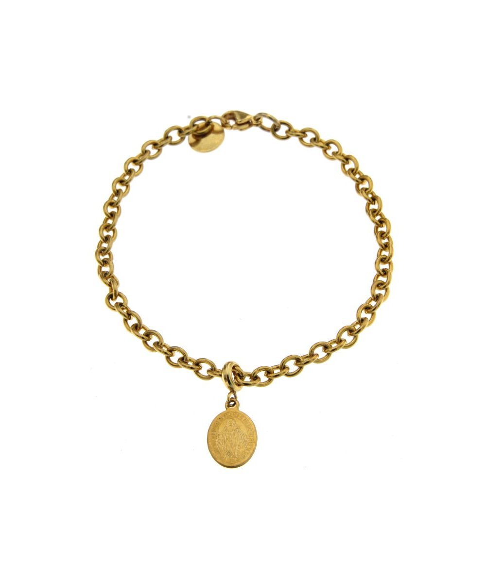 Bracciale uomo con medaglietta madonna in acciaio inox placcato oro 18k