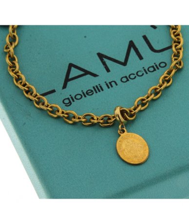 Bracciale uomo oro con medaglietta madonna in acciaio inox -Lamù gioielli
