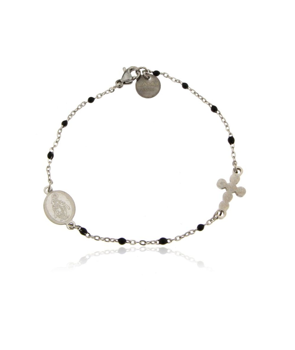 Bracciale rosario uomo con catena smaltata colore nero