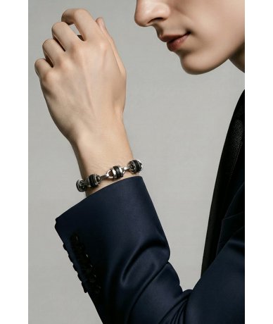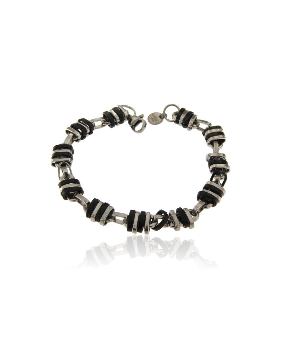 Bracciale uomo in acciaio inox bicolore acciaio e nero