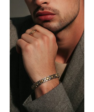 Bracciale uomo in acciaio inox bicolore acciaio e oro