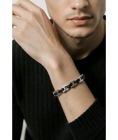 Bracciale uomo in acciaio inox bicolore nero e acciaio