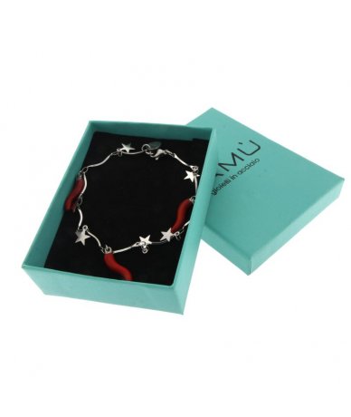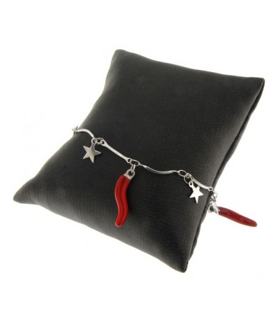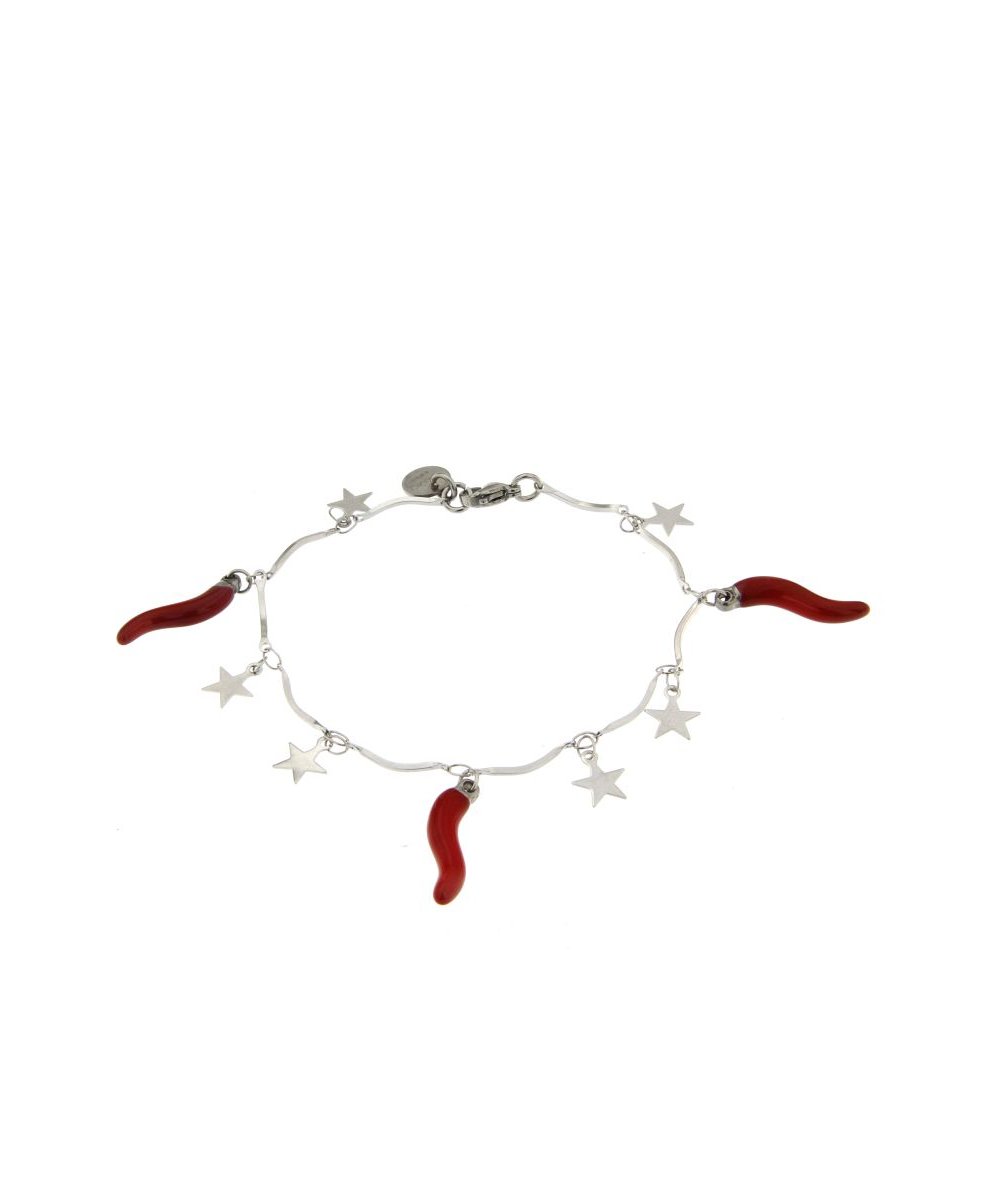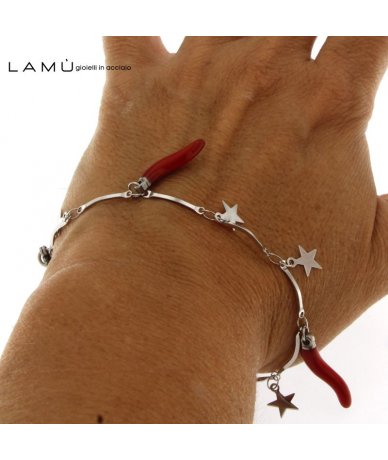 Bracciale con catena di stelle con cornetti laccato rosso in acciaio inox - Made in Italy - Lamù gioielli