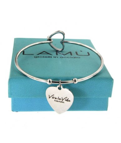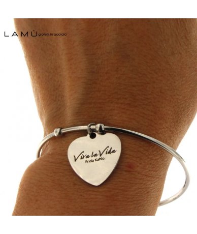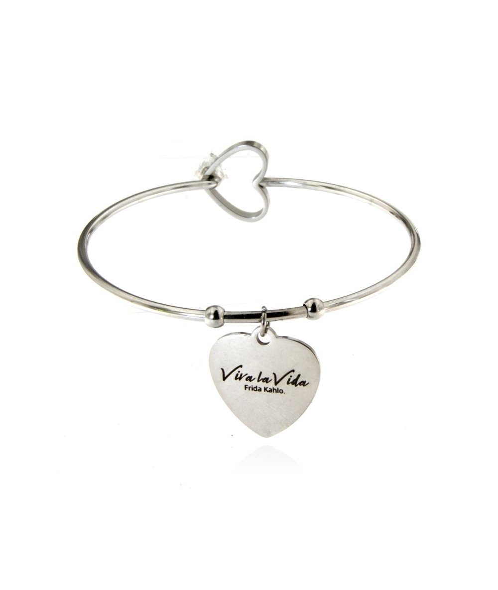 Bracciale rigido in acciaio inox con cuore inciso "Viva la Vida" Frida Kahlo
