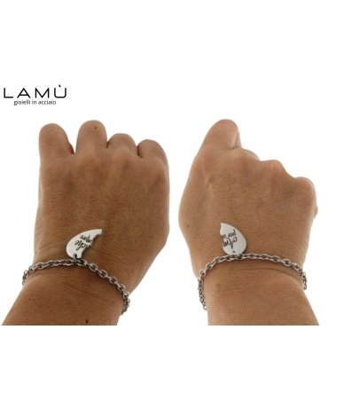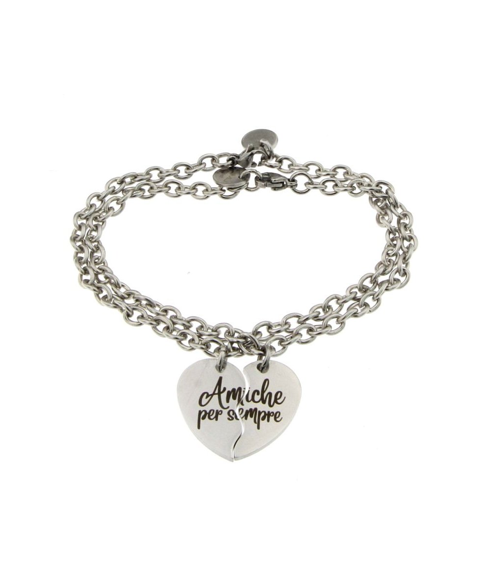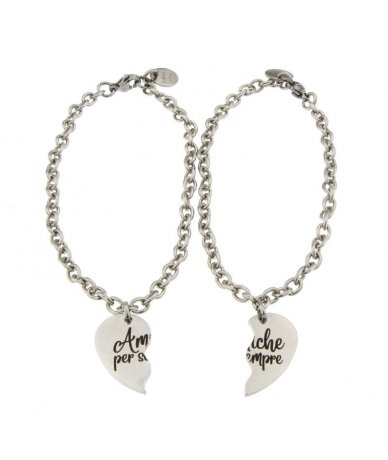 Bracciali con cuore divisibile inciso "Amiche per sempre" in acciaio inox