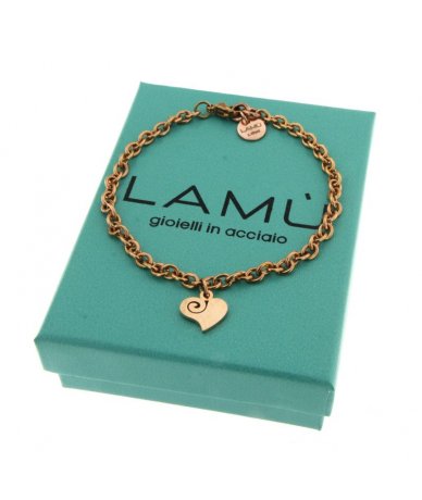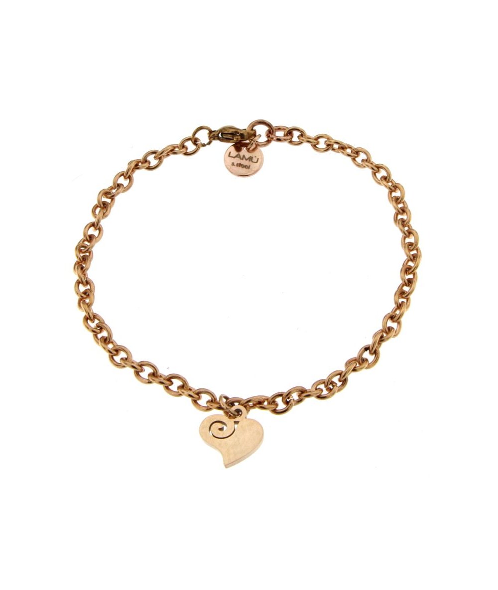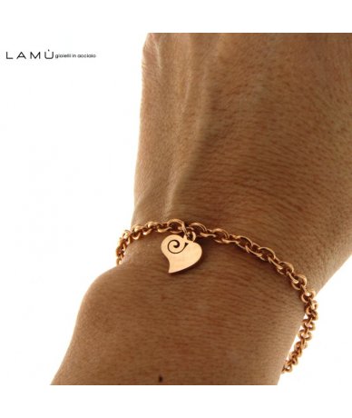 Bracciale in acciaio inox finitura oro rosa con pendente cuore con spirale