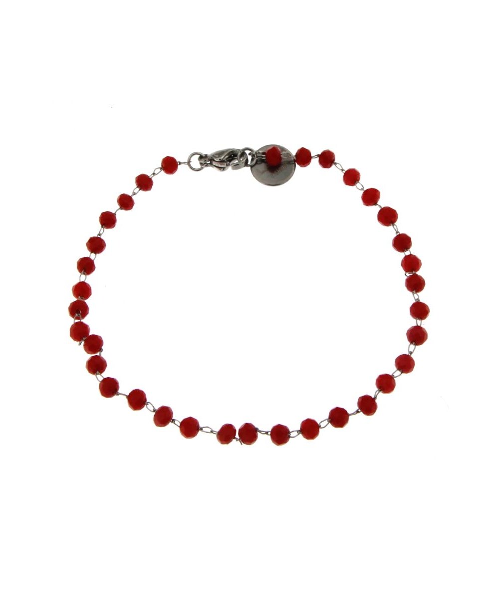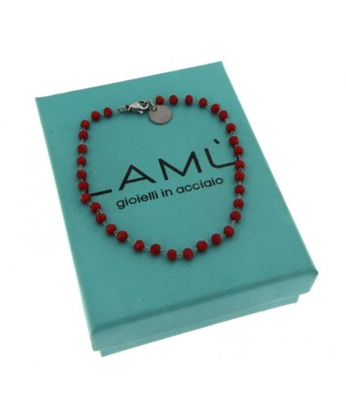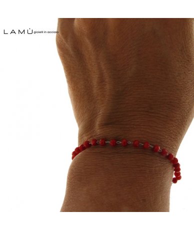 Bracciale acciaio inox con sfere in vetro colore rosso - Lamù gioielli