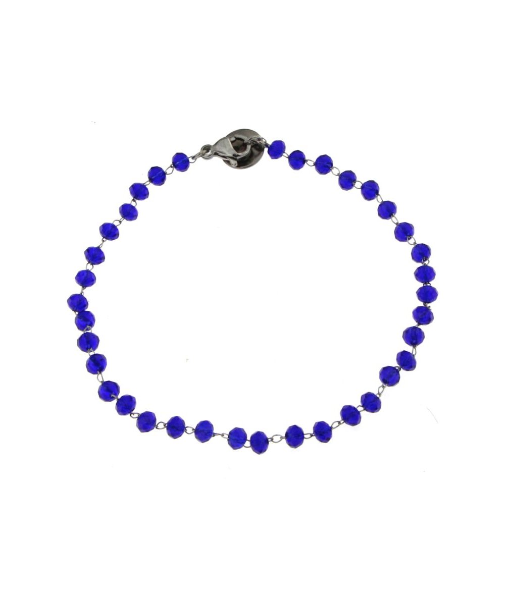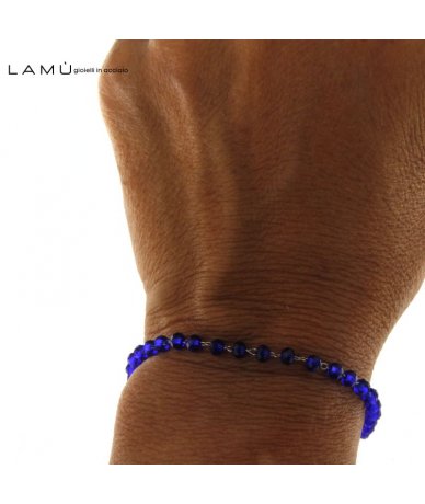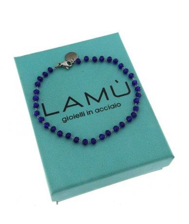 Bracciale acciaio inox con sfere in vetro colore blu - Lamù gioielli