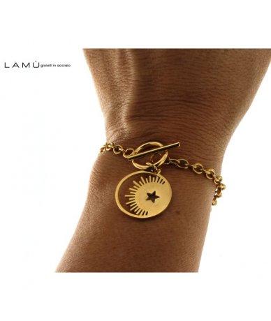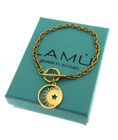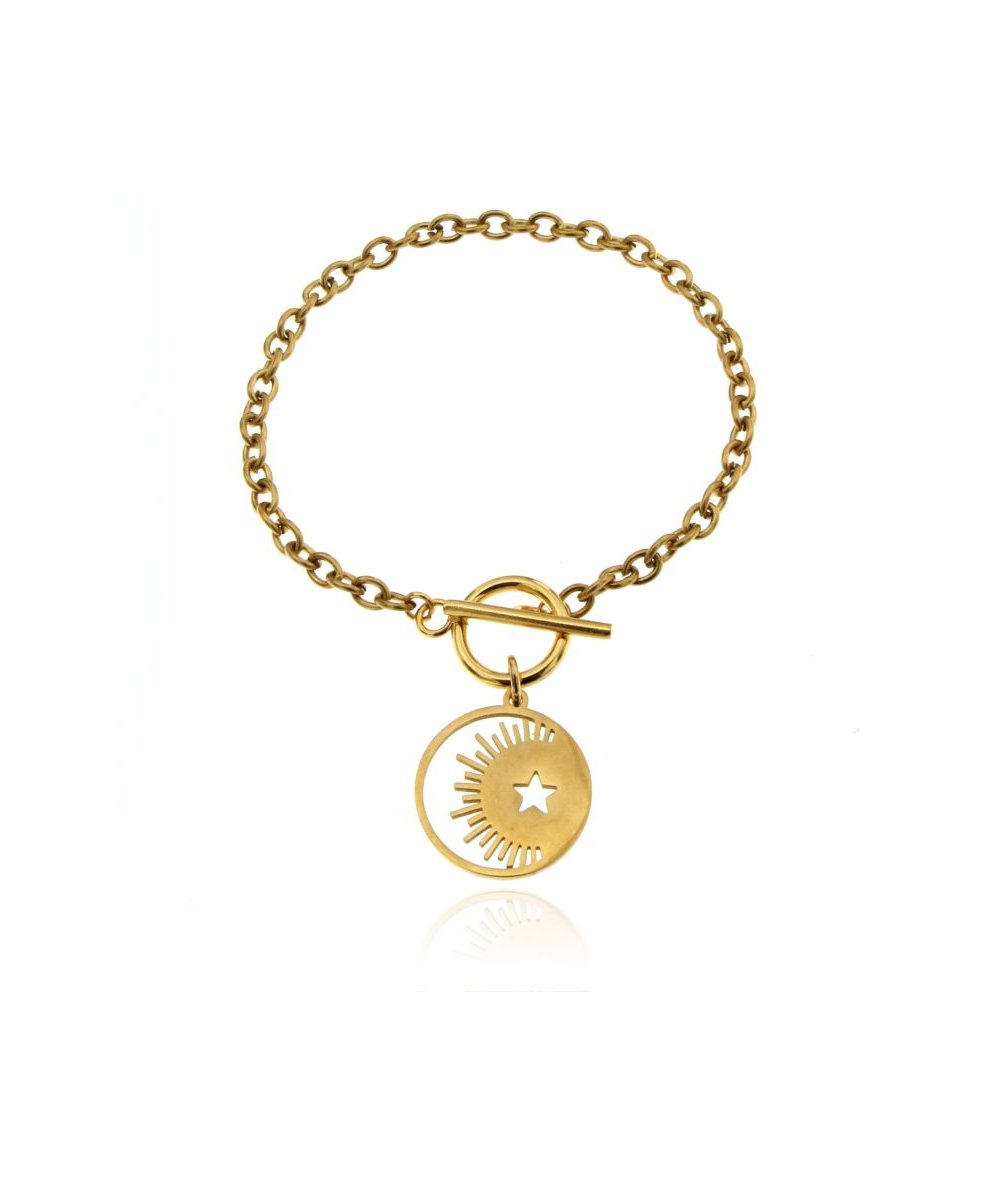 Bracciale con pendente luna crescente e stella in acciaio inox finitura oro