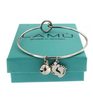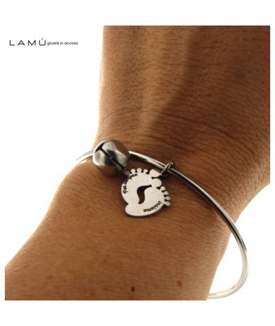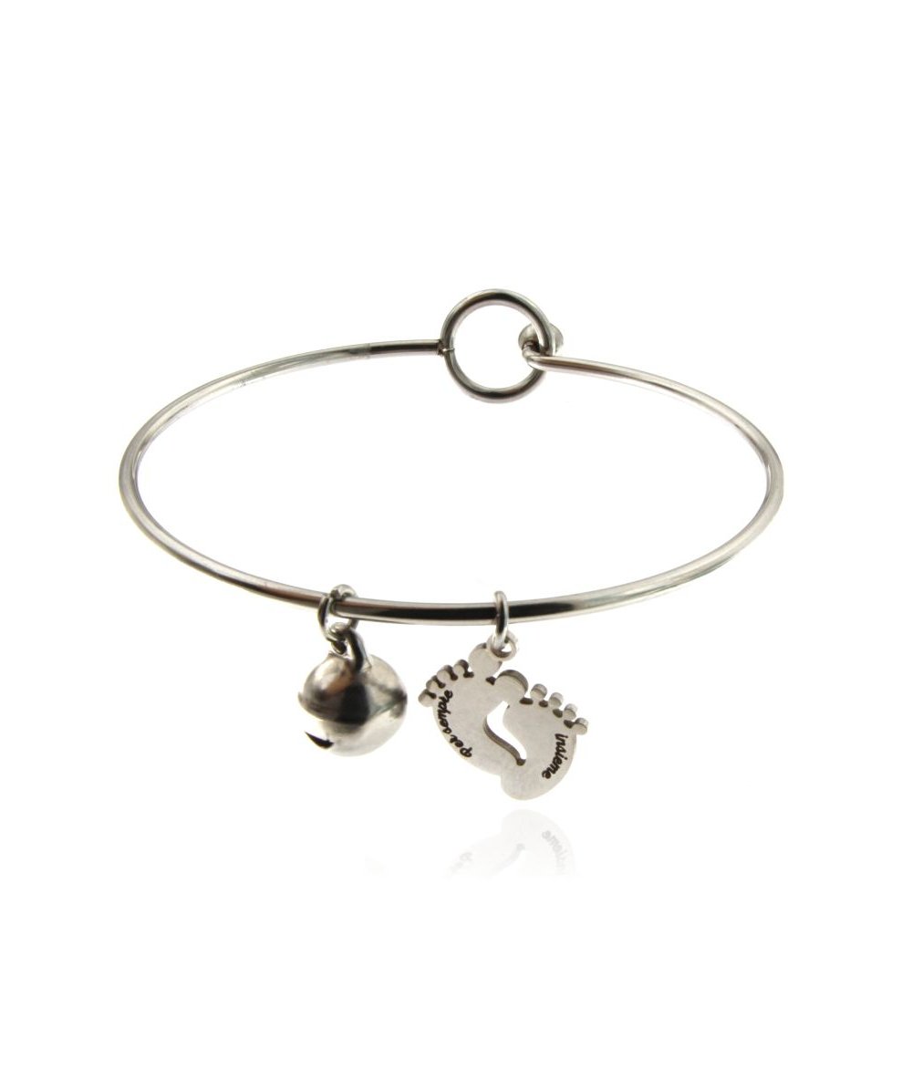 Bracciale rigido in acciaio inox con piedini incisi "Per sempre insieme"