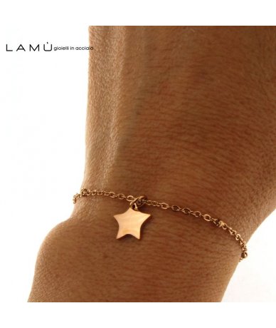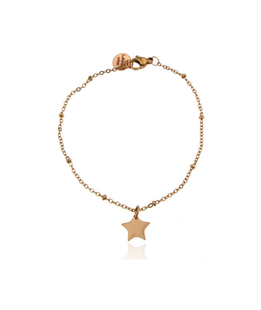 Bracciale sottile in acciaio inox oro rosa con pendente stella