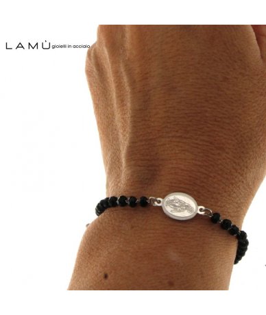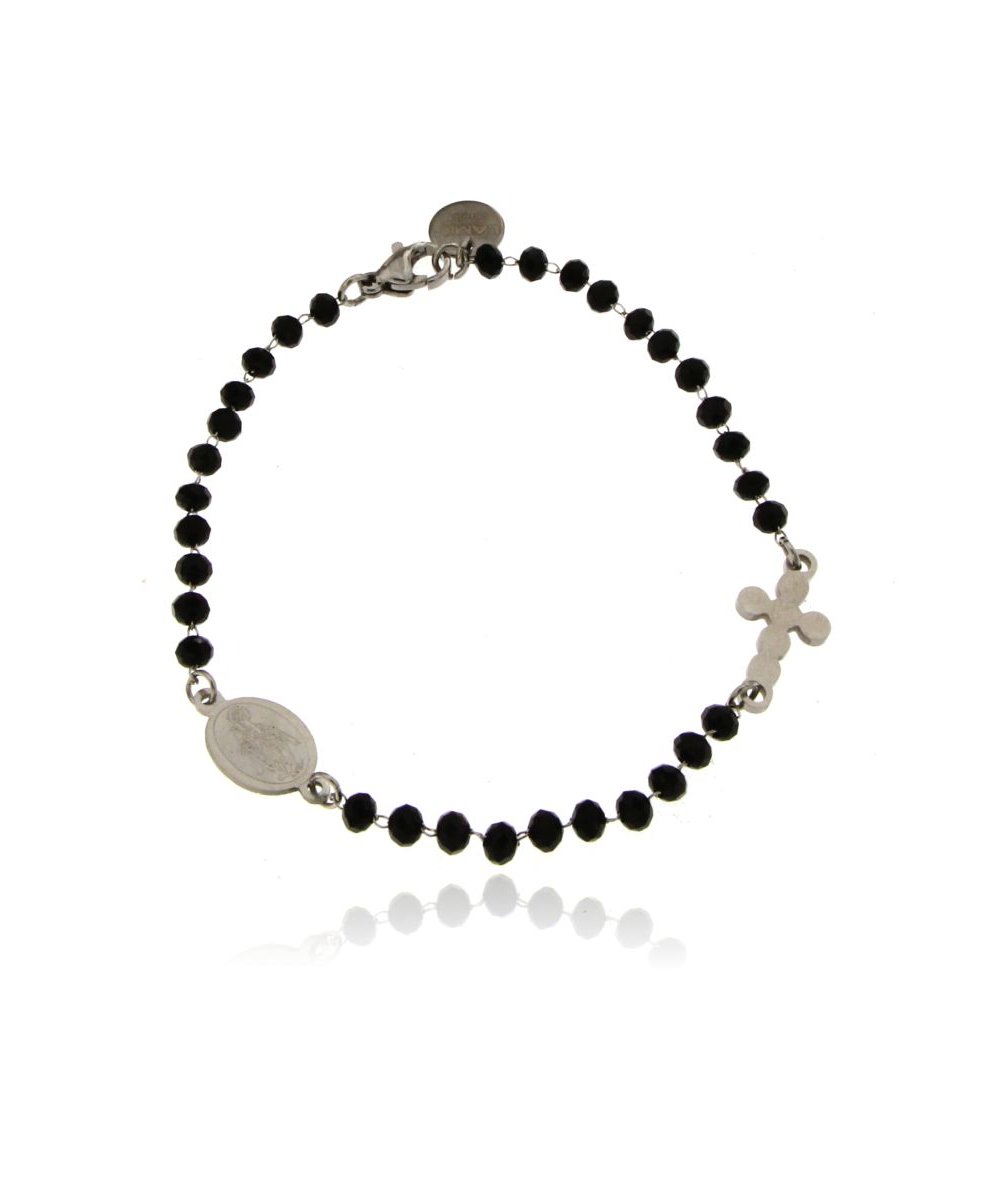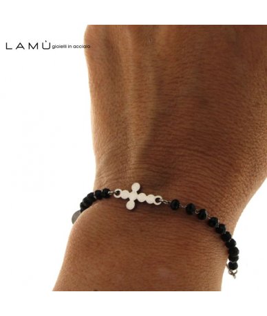 Bracciale rosario catena in acciaio inox con sfere in vetro colore nero - Lamù Gioielli