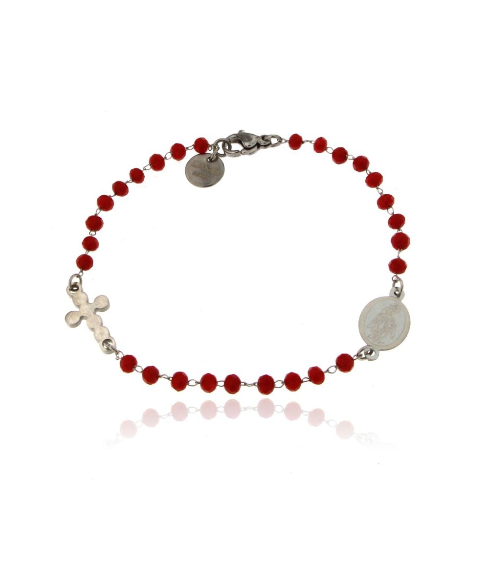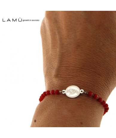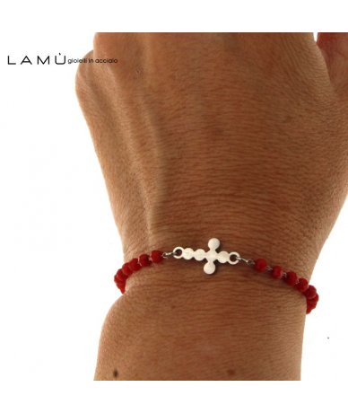 Bracciale rosario catena in acciaio inox con sfere in vetro colore rosso - Lamù Gioielli
