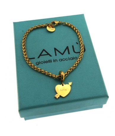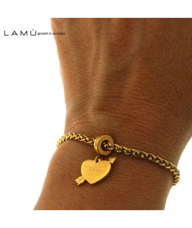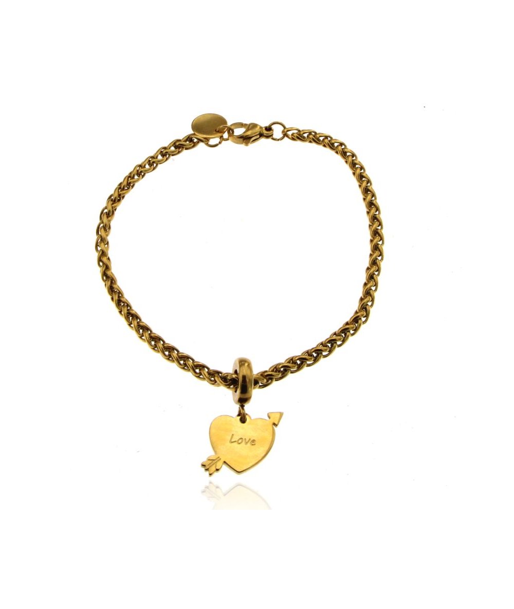 Bracciale in acciaio inox con pendente cuore e freccia finitura oro