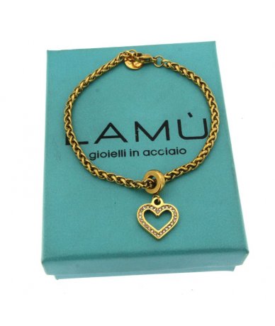 Bracciale in acciaio inox oro con pendente cuore con strass