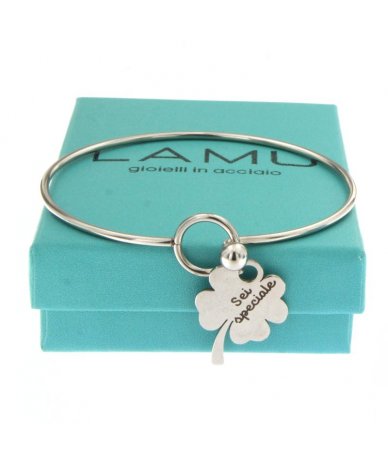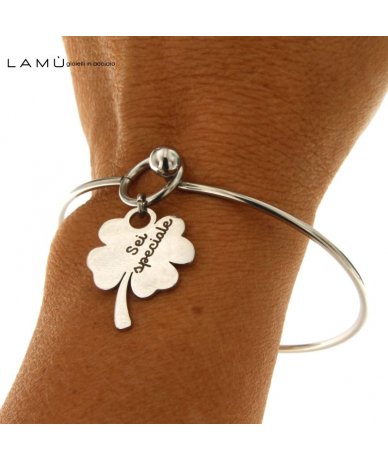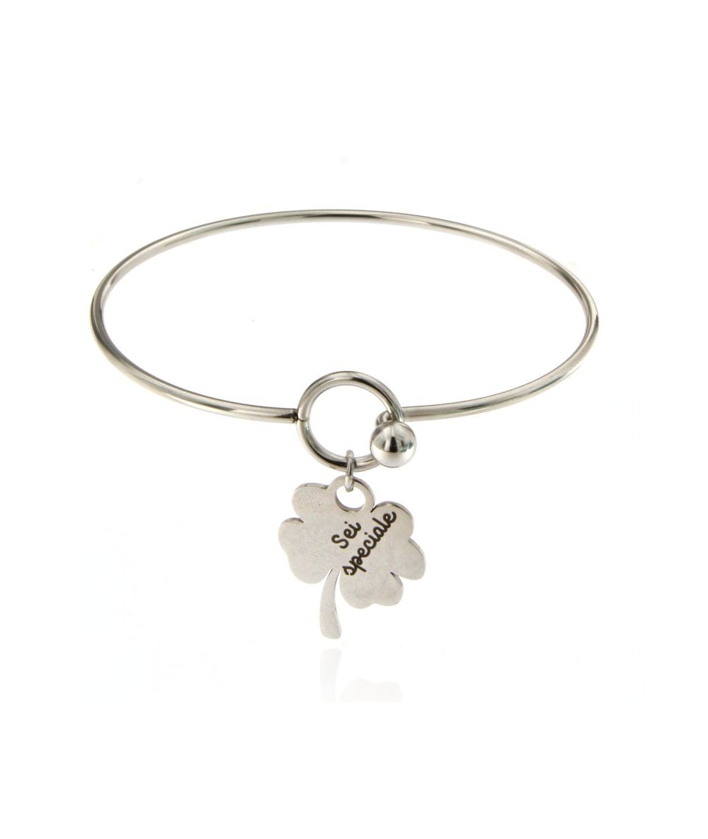 Bracciale rigido con quadrifoglio inciso "Sei speciale"