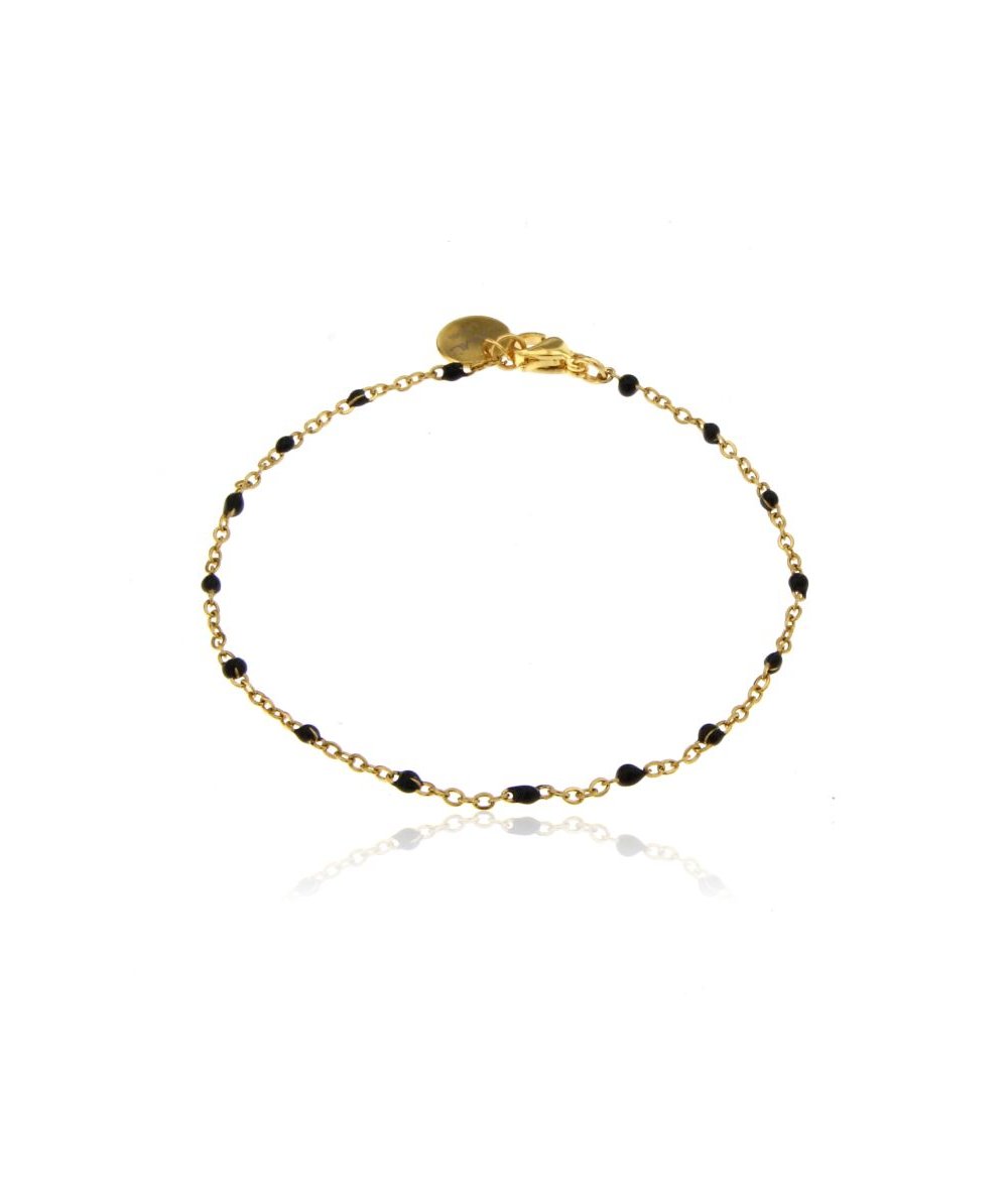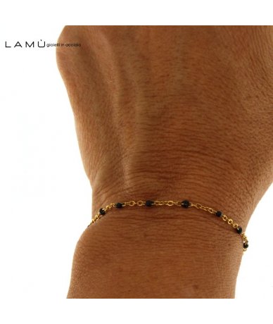 Bracciale in acciaio inox oro con piccole sfere smaltate nere