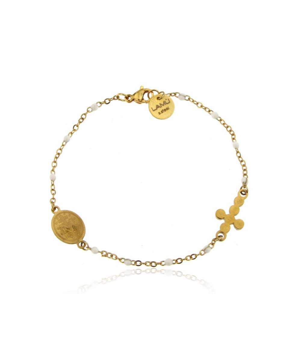 Bracciale rosario in acciaio inox con catena oro smaltata bianca