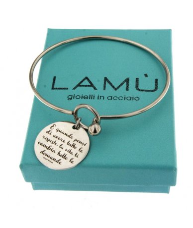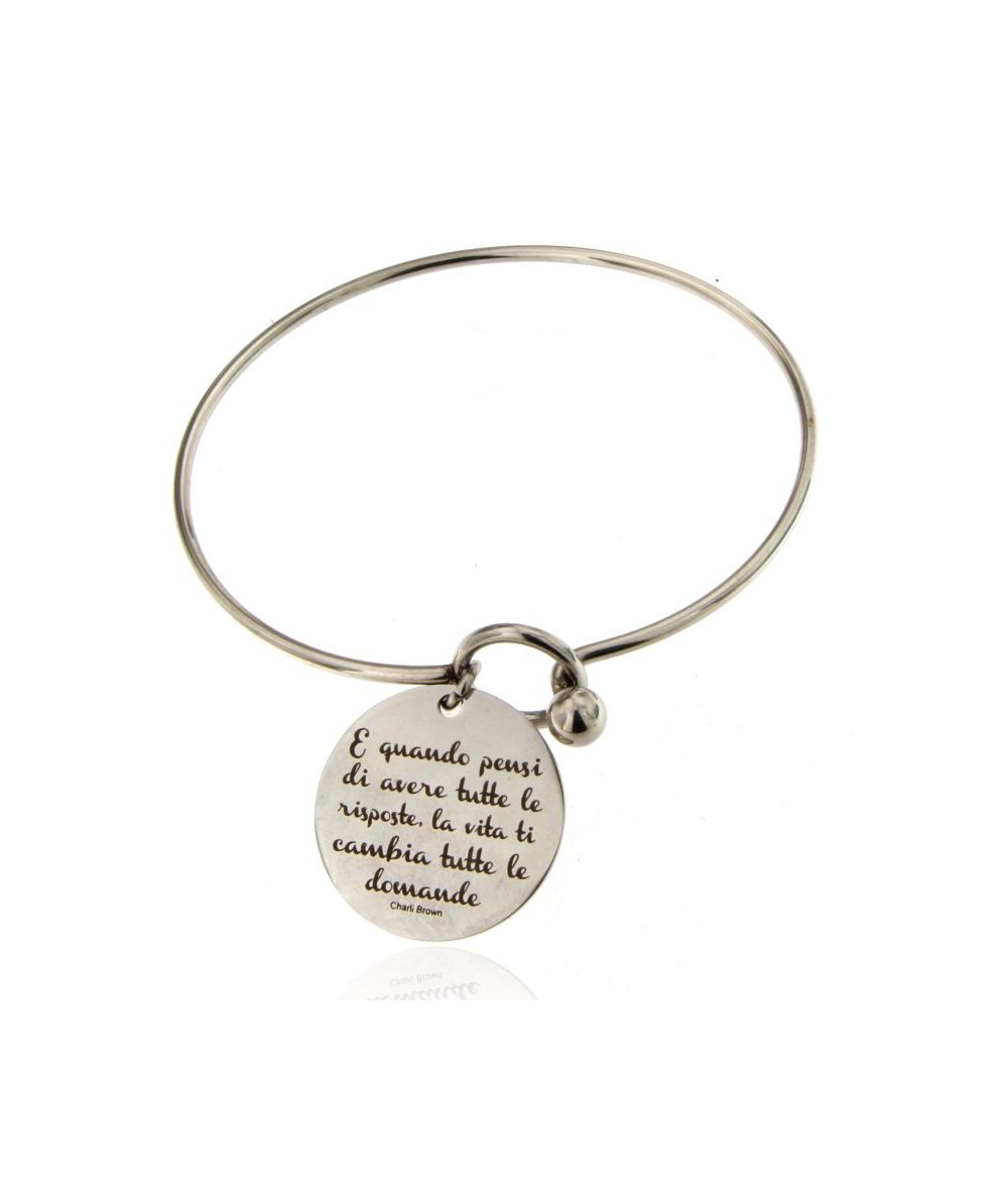 Bracciale rigido inciso "E quando pensi di avere tutte le risposte, la vita ti cambia tutte le domande"
