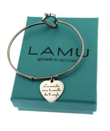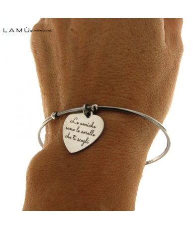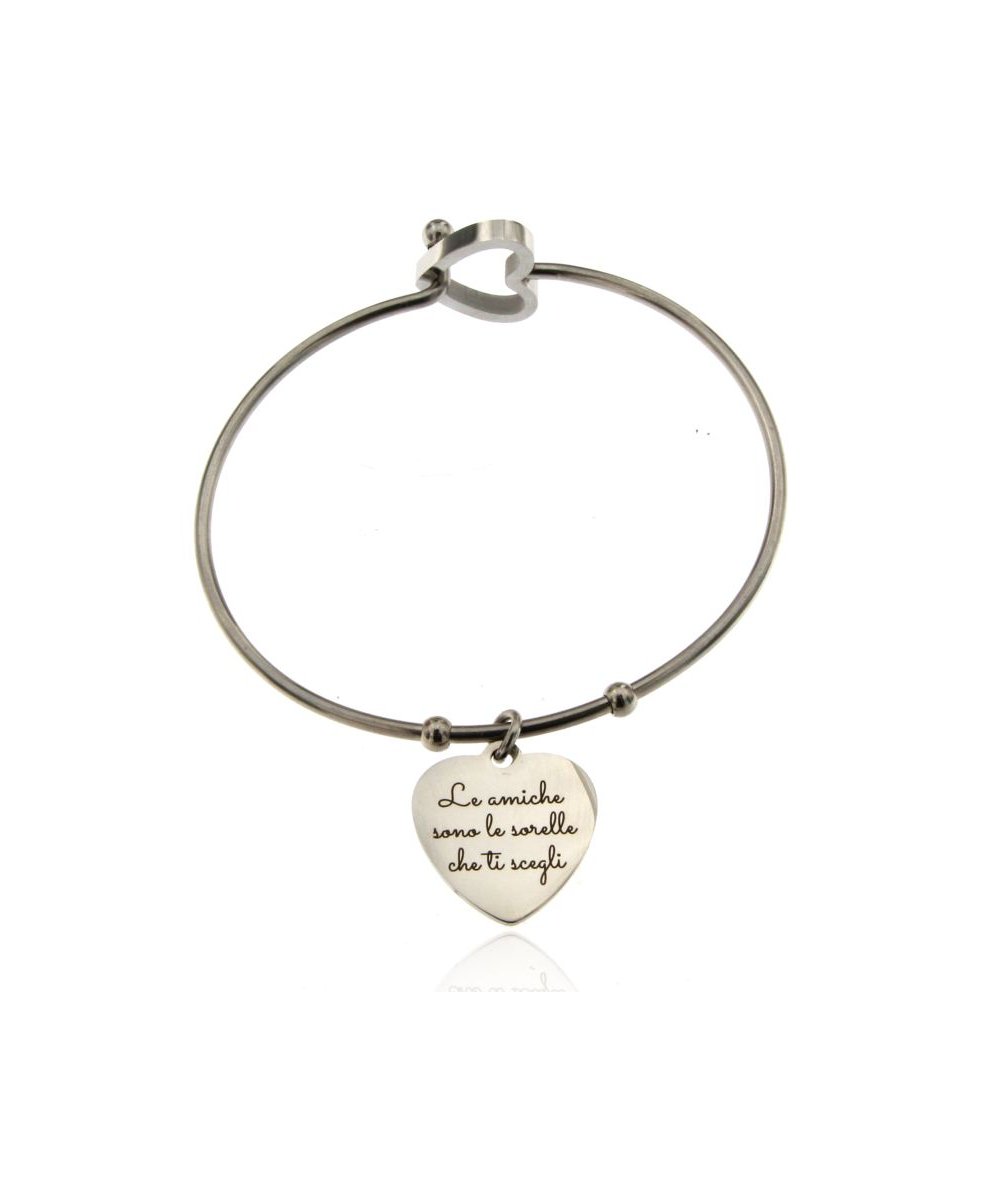 Bracciale rigido in acciaio inox con cuore inciso "Le amiche sono le sorelle che ti scegli"