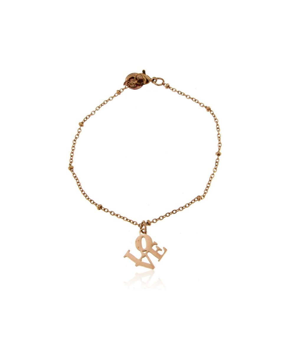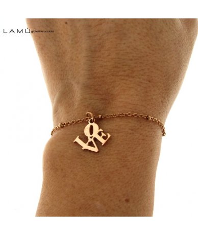 Bracciale sottile in acciaio inox oro rosa con pendente LOVE