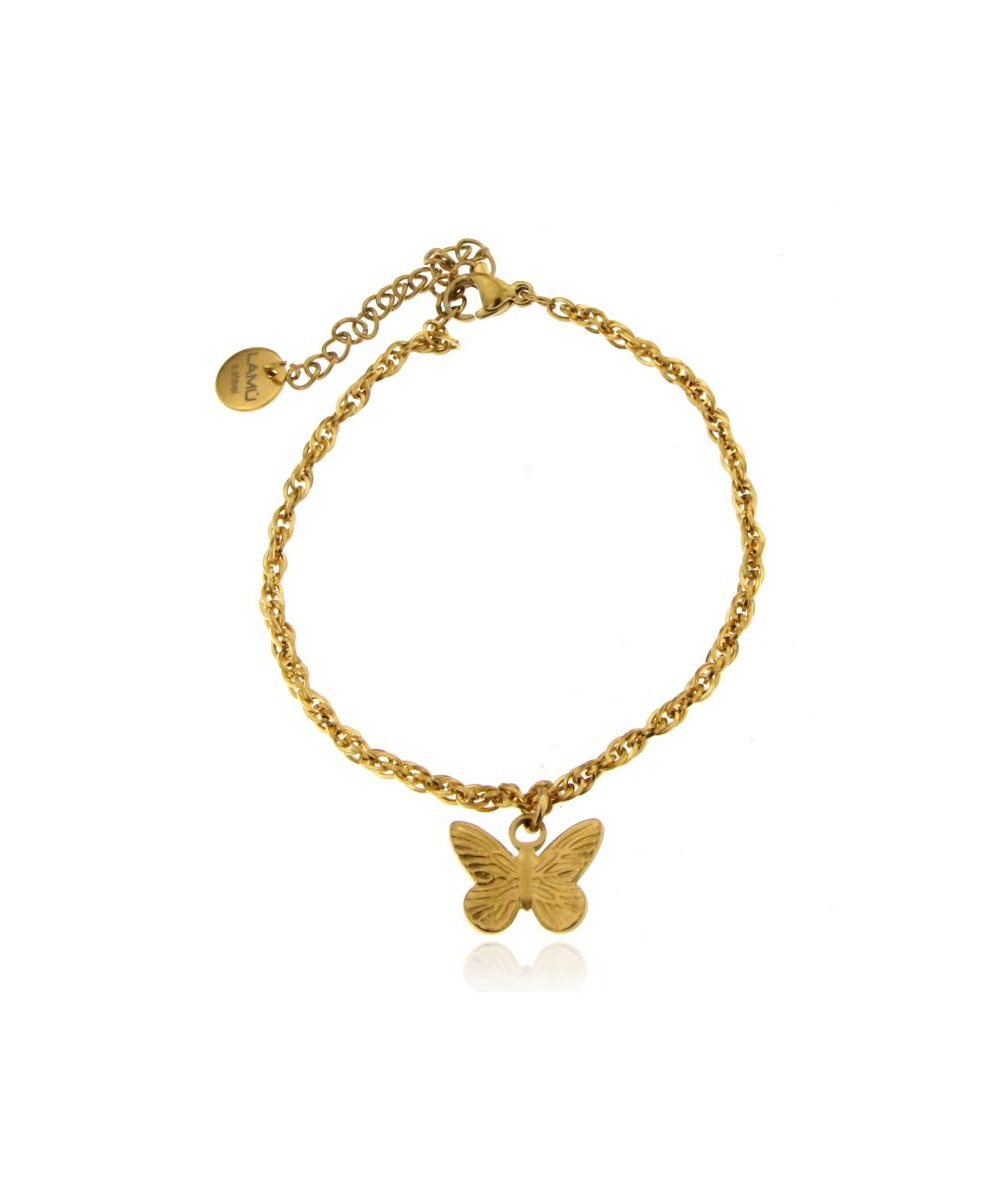 Bracciale in acciaio oro con pendente farfalla