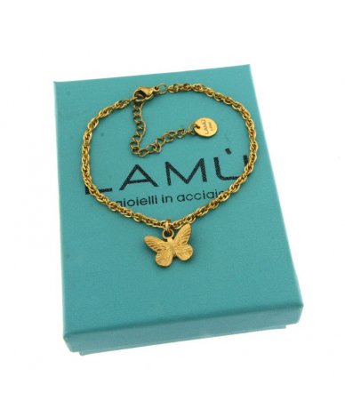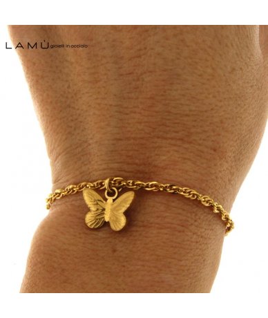 Bracciale in acciaio oro pendente farfalla