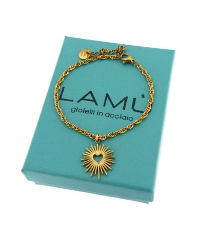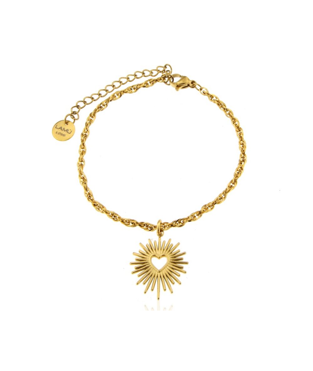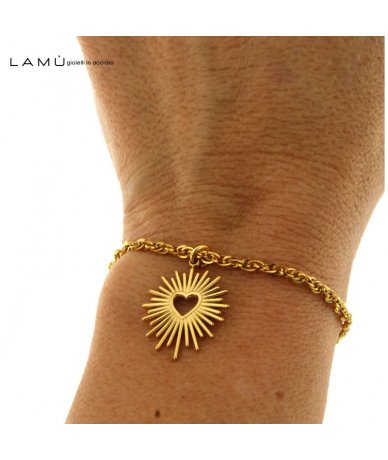 Bracciale in acciaio oro con pendente cuore con raggi