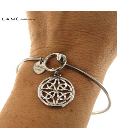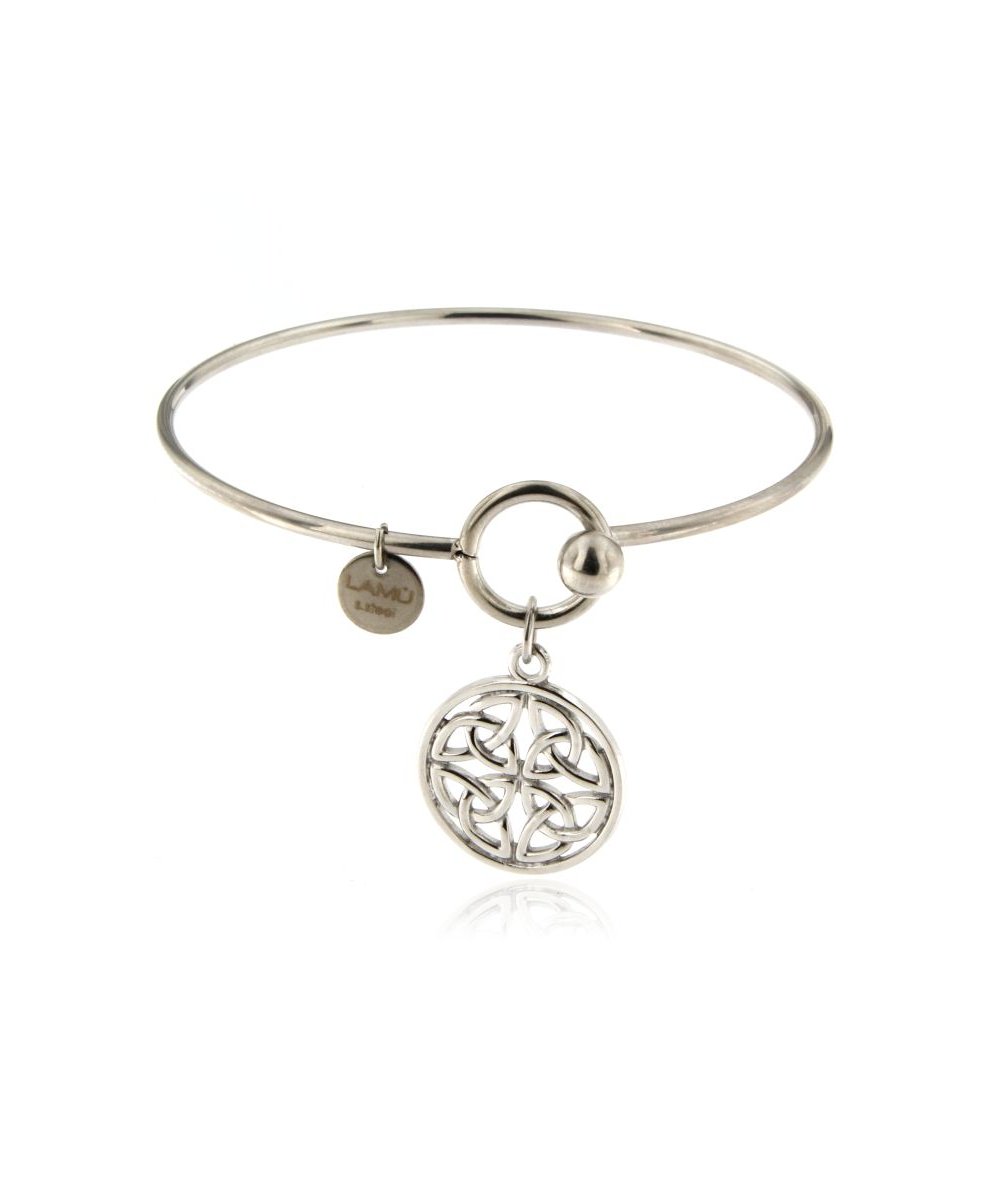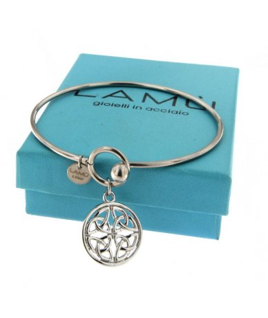 Bracciale rigido in acciaio inox con pendente tondo con nodo trinità