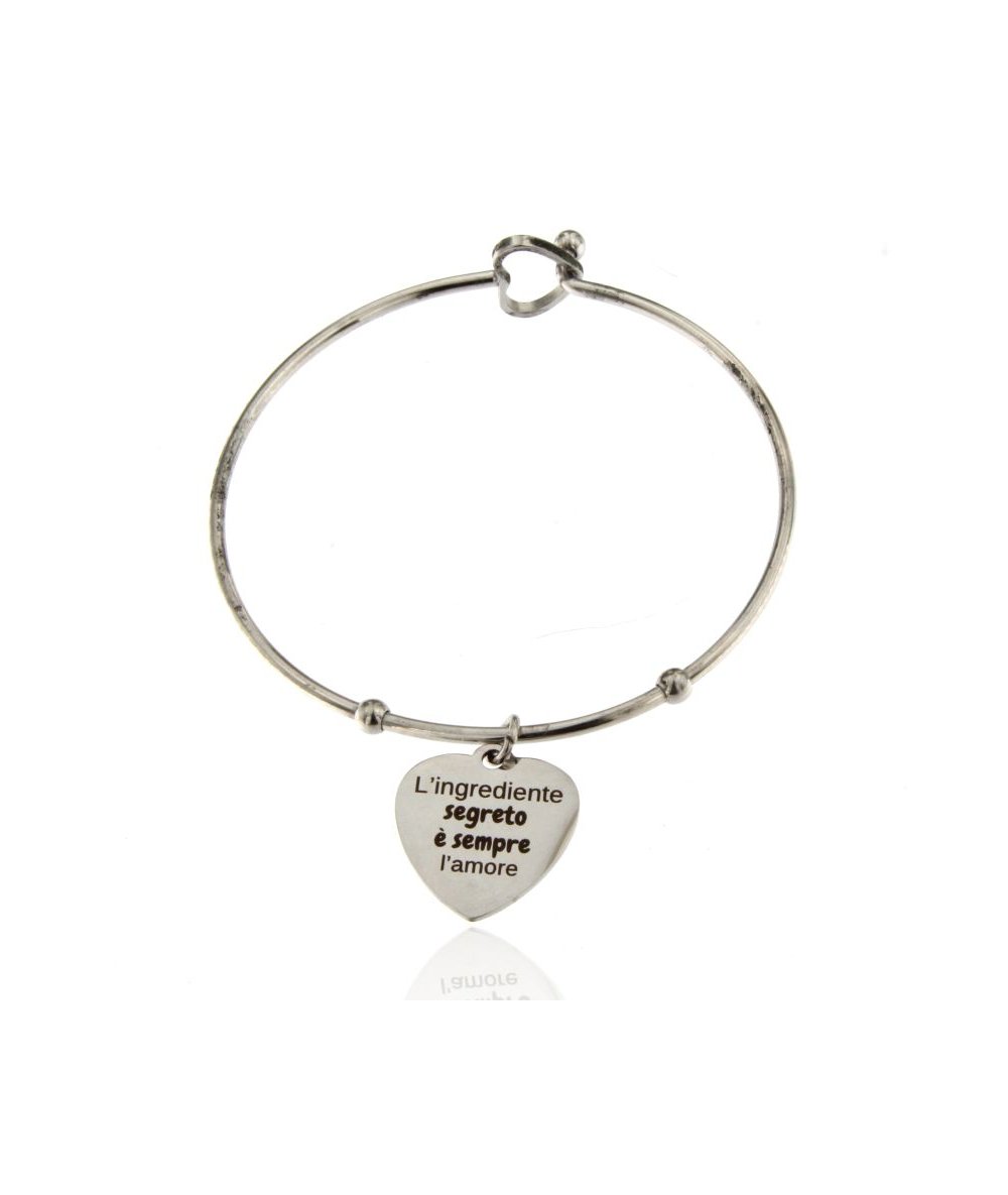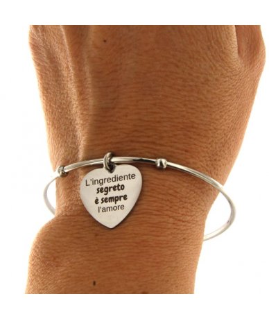 Bracciale rigido in acciaio inox con cuore inciso "L'ingrediente segreto è sempre l'amore"