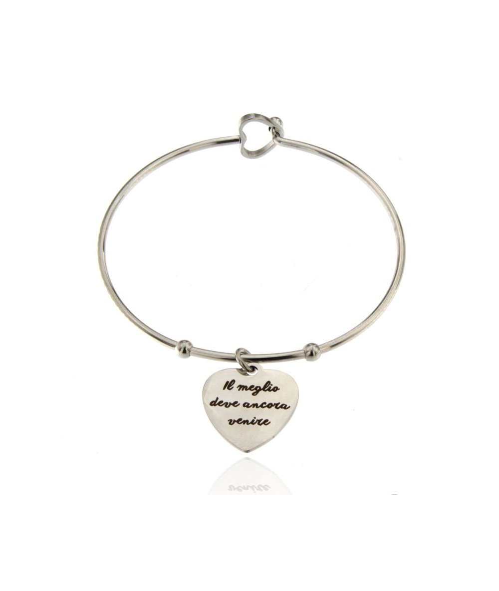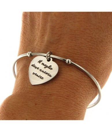 Bracciale rigido in acciaio inox con cuore inciso "Il meglio deve ancora venire"