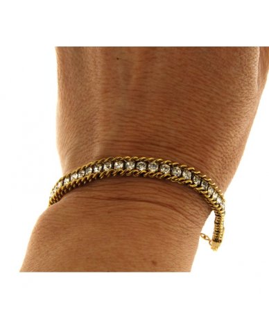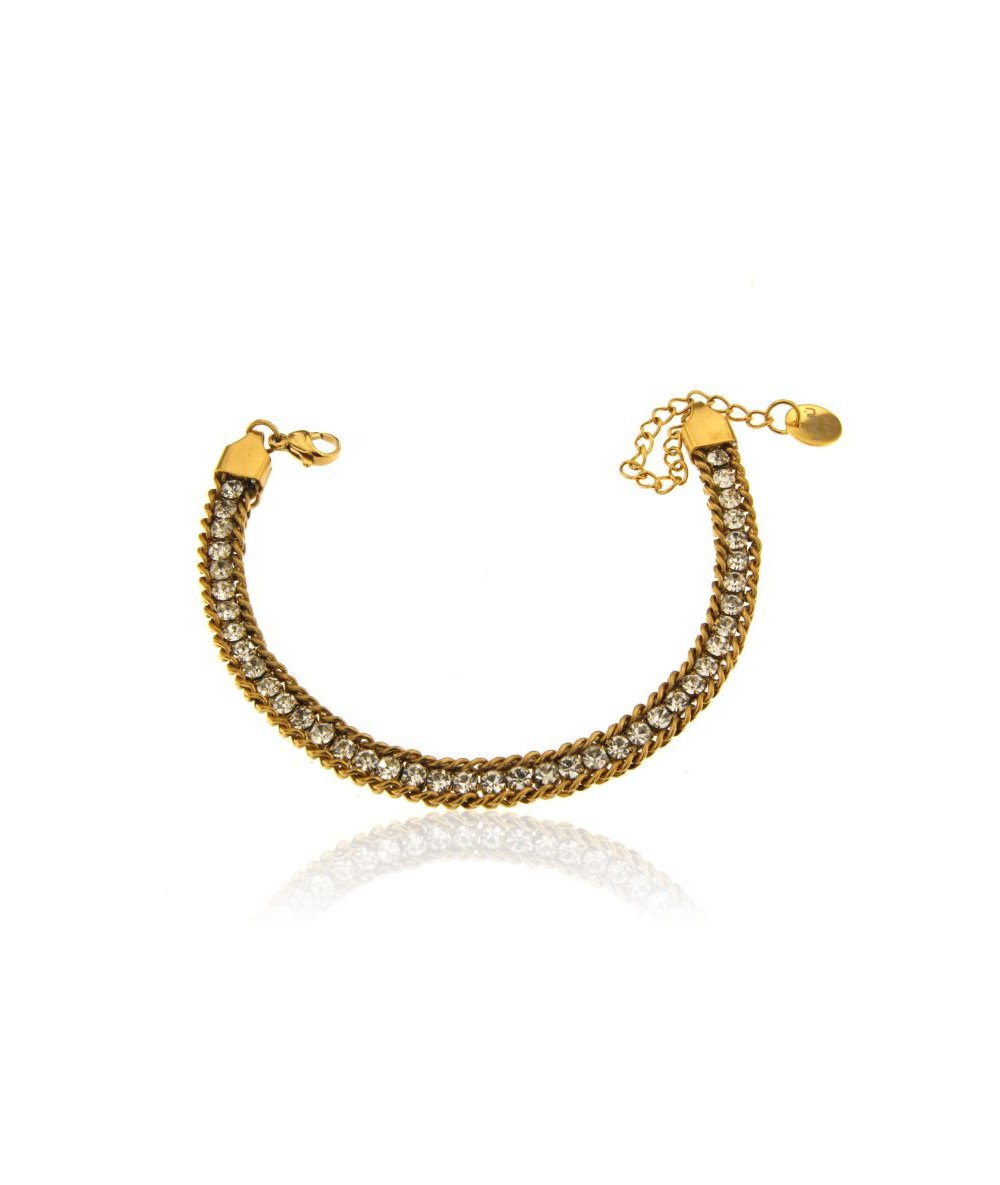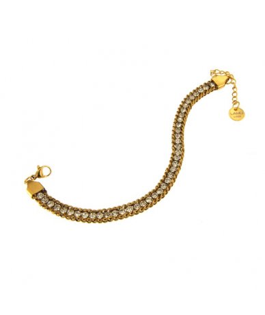 Bracciale catena con strass in acciaio inox placcato oro 18k
