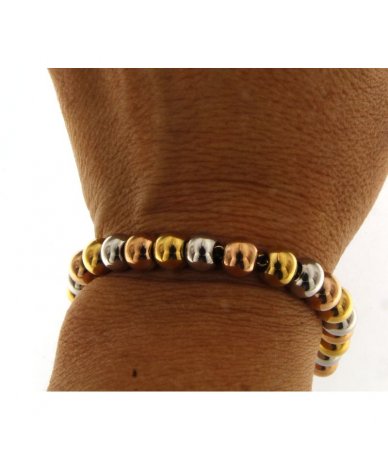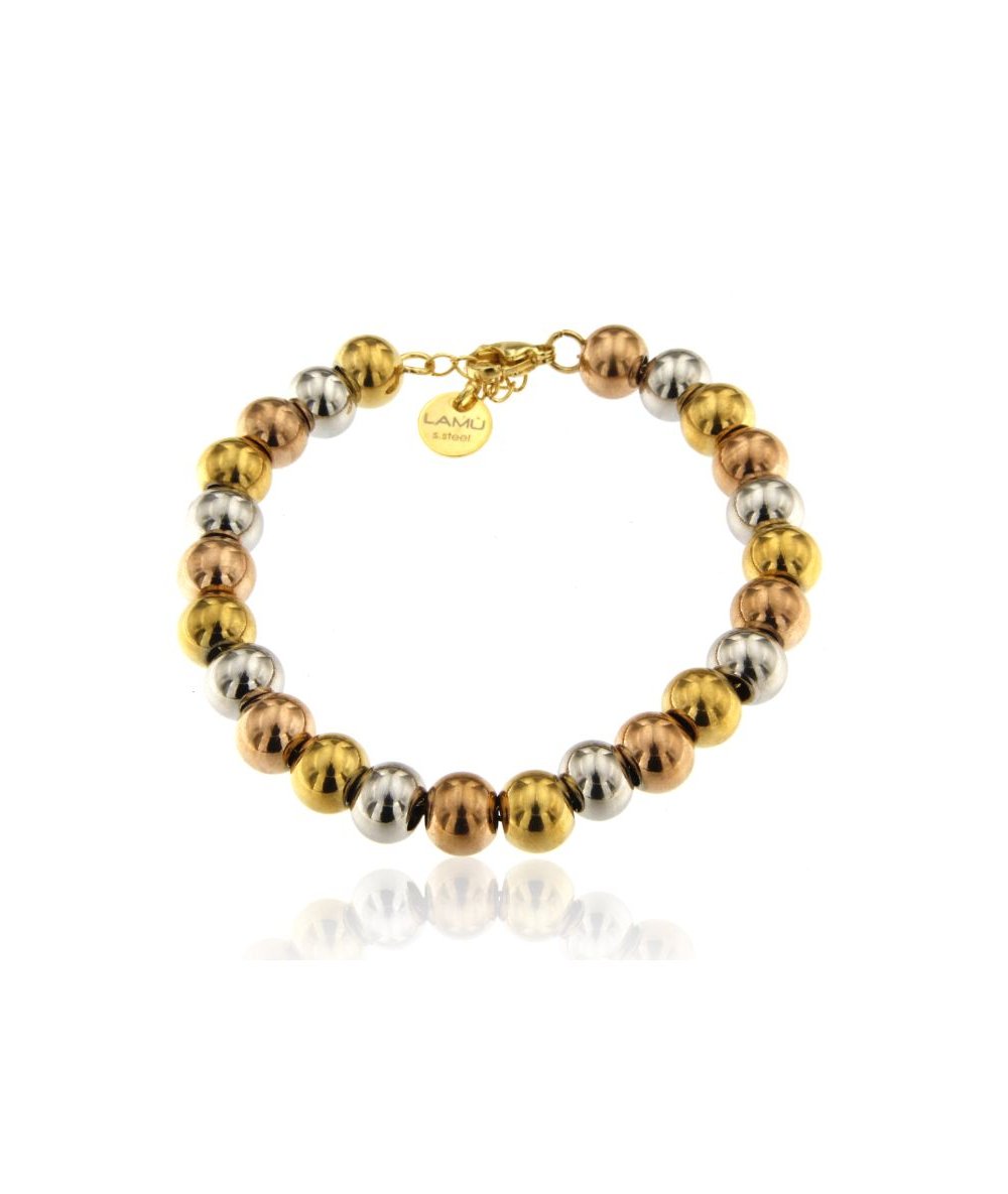 Bracciale di sfere 6 mm tricolor in acciaio inox, acciaio placcato oro 18k e acciaio placcato oro rosa