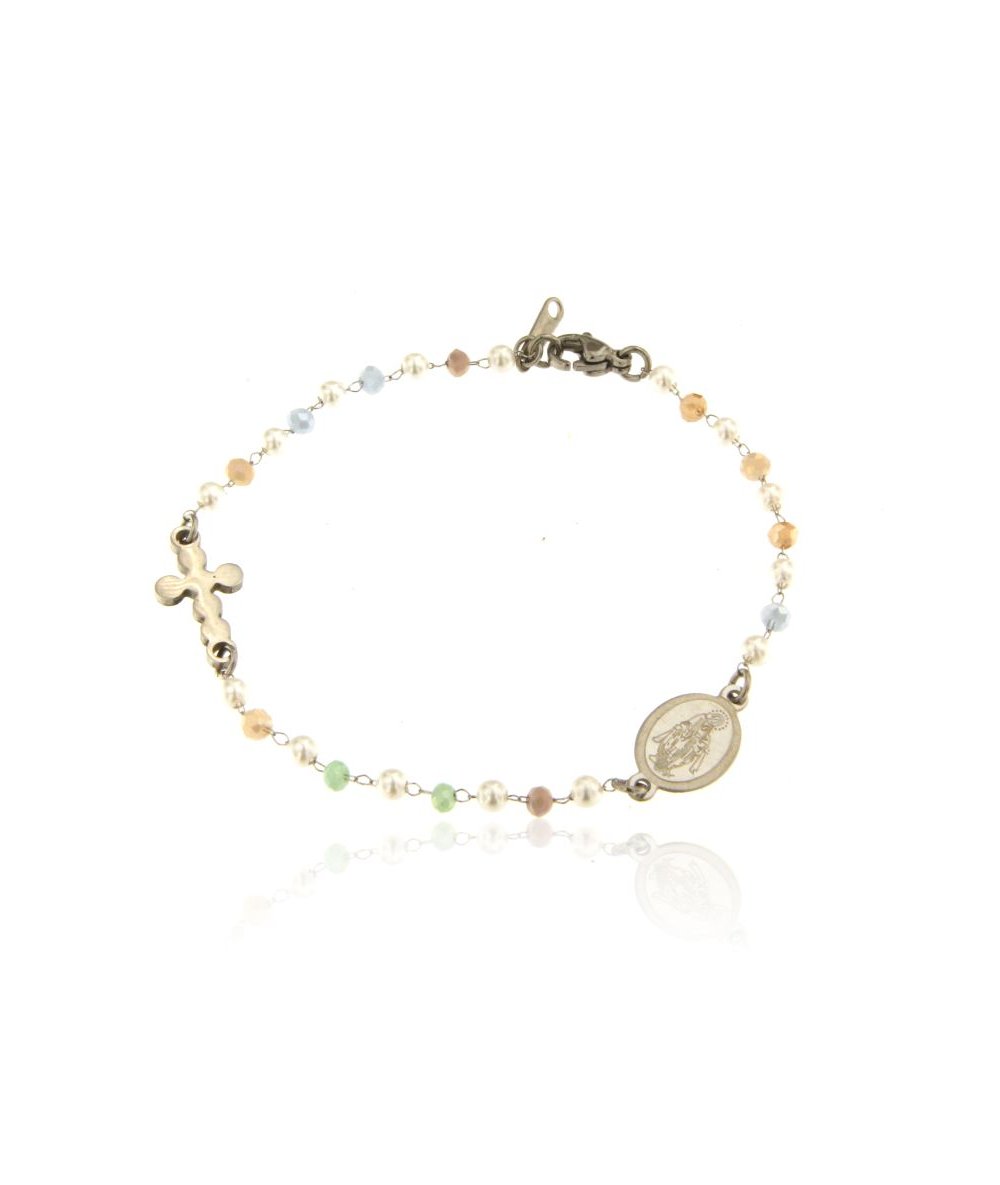 Bracciale rosario con catena con perline bianche e perline in vetro in acciaio inox