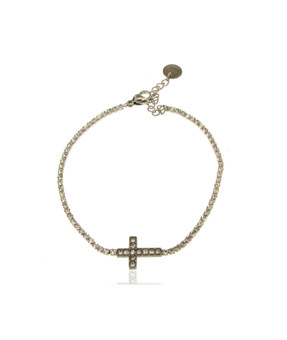 Bracciale di strass con croce centrale in acciaio inox