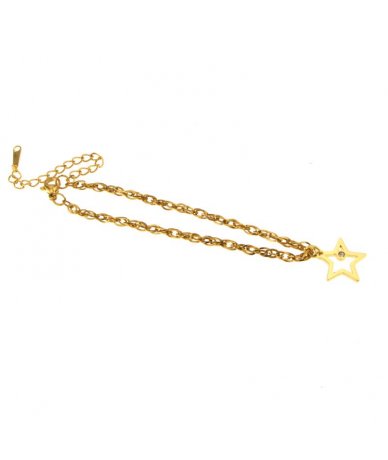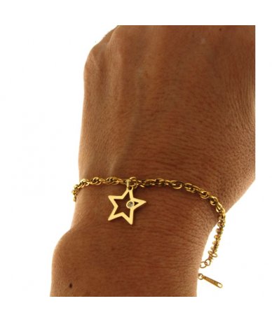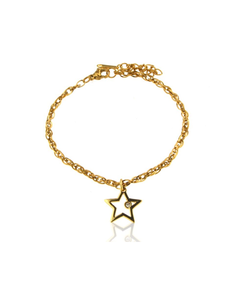 Bracciale pendente stella con strass in acciaio inox placcato oro 18k